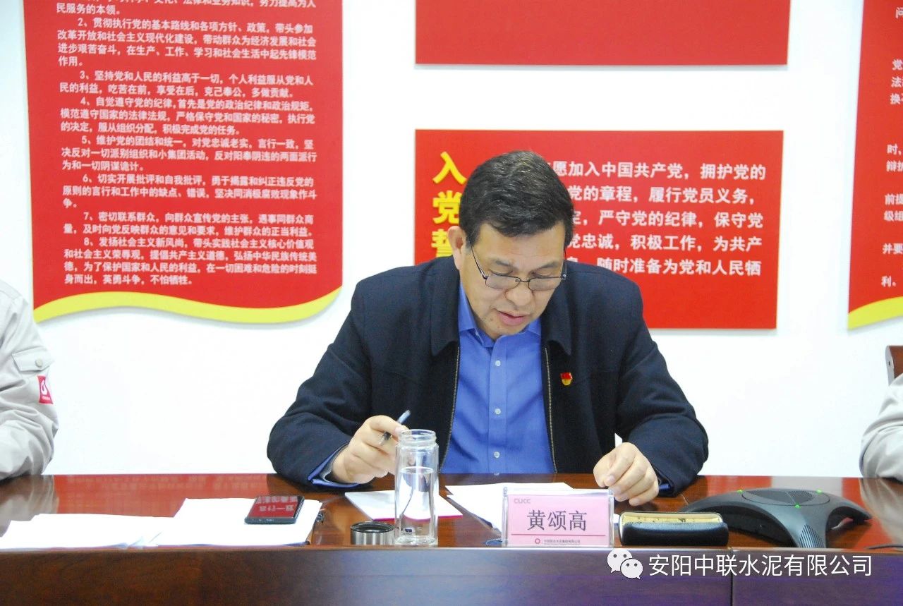 最后,黃頌高代表領(lǐng)導(dǎo)班子作表態(tài)發(fā)言。黃頌高表示,安陽(yáng)中聯(lián)將在中國(guó)聯(lián)合水泥、河南運(yùn)營(yíng)管理區(qū)的正確領(lǐng)導(dǎo)下,以此次民主生活會(huì)為契機(jī),緊緊圍繞中國(guó)聯(lián)合水泥下達(dá)的年度目標(biāo)任務(wù)和政治巡視整改工作安排,著力謀劃好公司黨的建設(shè)和“水泥+”一體化經(jīng)營(yíng)發(fā)展大計(jì),加強(qiáng)科學(xué)謀劃,深化改革創(chuàng)新,搶抓機(jī)遇,堅(jiān)定信心,迎難而上,確保全年各項(xiàng)目標(biāo)任務(wù)如期完成,以優(yōu)異的成績(jī)迎接建黨100周年。