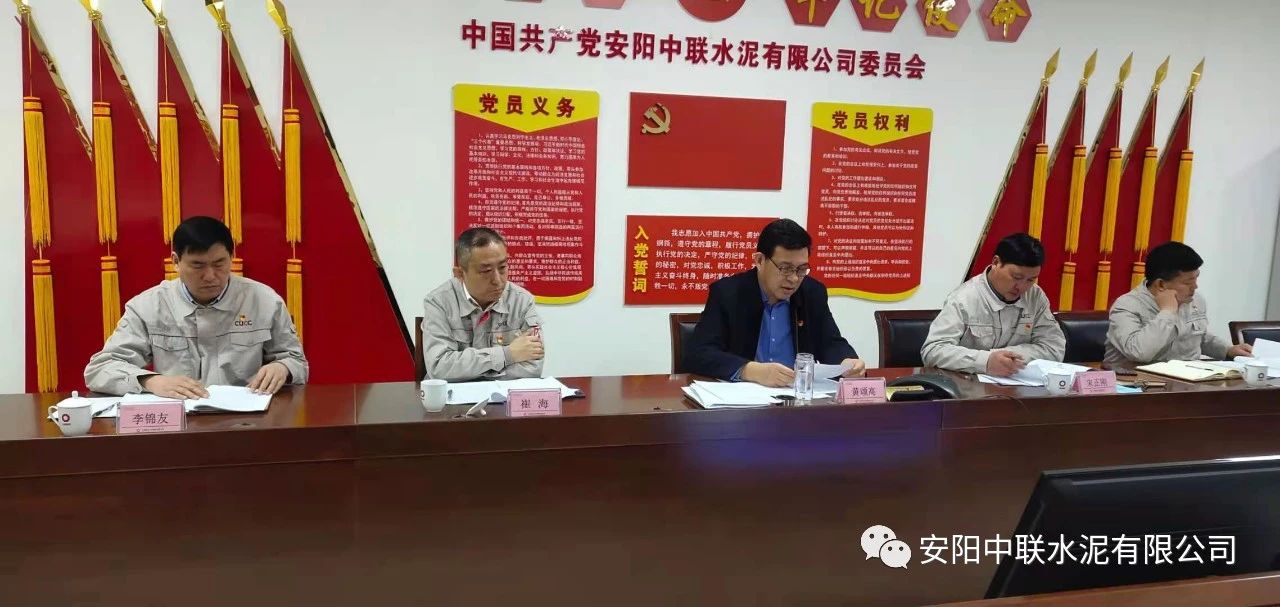 按照中國(guó)聯(lián)合水泥黨委關(guān)于認(rèn)真開(kāi)好2020年度民主生活會(huì)通知要求,2月24日上午,安陽(yáng)中聯(lián)2020年度黨員領(lǐng)導(dǎo)班子民主生活會(huì)在公司黨員活動(dòng)室召開(kāi)。中國(guó)建材股份黨委常委、執(zhí)行董事、副總裁,中國(guó)聯(lián)合水泥黨委書記、董事長(zhǎng)崔星太通過(guò)視頻連線督導(dǎo)會(huì)議并作點(diǎn)評(píng)講話。中國(guó)聯(lián)合水泥黨群工作部主任侯萍、紀(jì)檢監(jiān)察室副主任董治及安陽(yáng)中聯(lián)黨委委員、領(lǐng)導(dǎo)班子成員參加會(huì)議。安陽(yáng)中聯(lián)黨委書記、總經(jīng)理黃頌高主持會(huì)議。